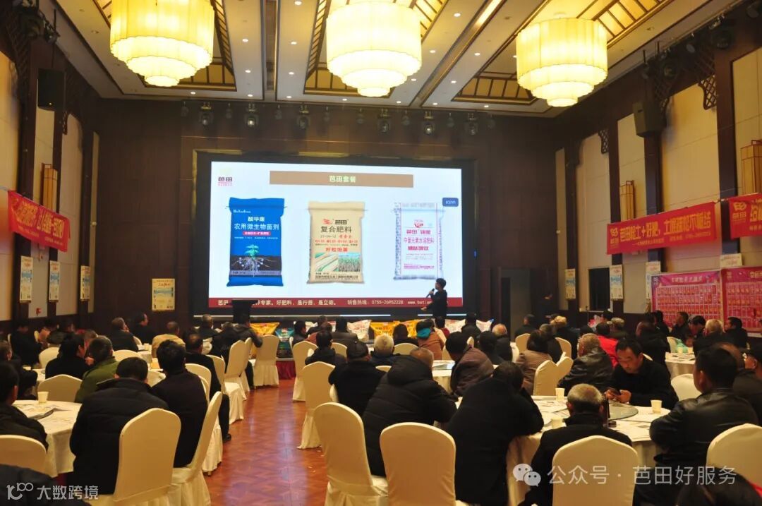 湖北襄阳主产水稻、花生、玉米、小麦等农作物,种植面积广,用肥量大。目前已到了花生、玉米等作物的备肥期,为抢占市场,让农户用上芭田好肥料,享受芭田好服务,提升终端商的销售信心,3月24,湖北农家富农资联合芭田公司举办了一场“优品+特品”大户推广会。当天上午,约240多名种植大户参加了会议。会议效果显著,参会人员均有订肥,人均订单量在一吨以上。