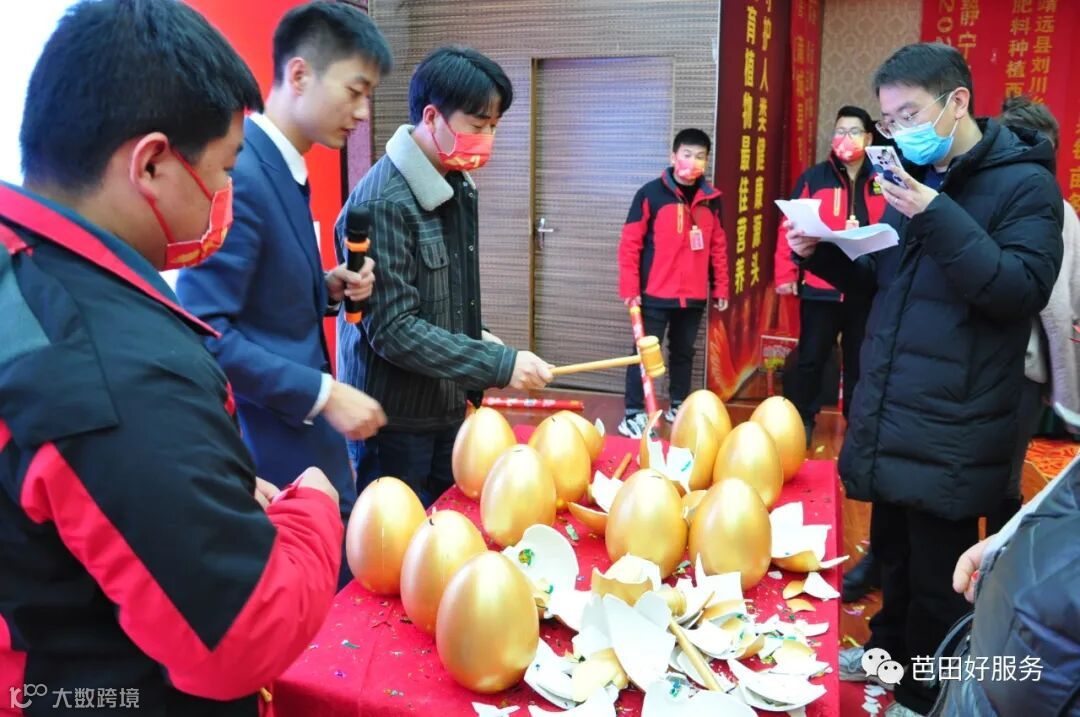 会上,芭田有机无机三型复肥登台亮相,吸引了销售商们的积极抢购,他们交款砸金蛋,订购芭田好肥料的同时,享受砸金蛋中奖的快乐。