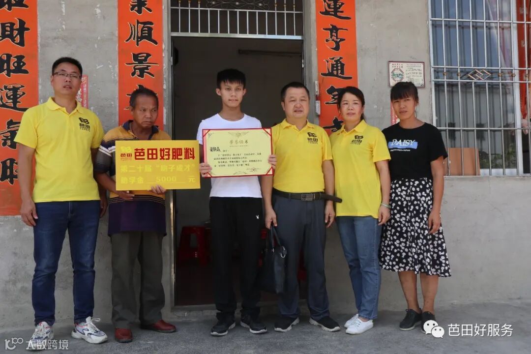 作为中国复合肥行业里第一家上市公司,芭田一直坚守初心,秉承“喂育植物最佳营养,守护人类健康源头”的使命,匠心制造好肥料,践行“立德行善”之事。爱心助学,助子成才。这是芭田对农人的关爱,更是芭田主动担起的一份责任。这份责任与担当,点亮了无数困难家庭脱贫致富的希望,芭田希望爱心这份爱心能够薪火相传,更希望能够将这份善心和责任感发扬传播,感染更多的人一起聚爱前行。