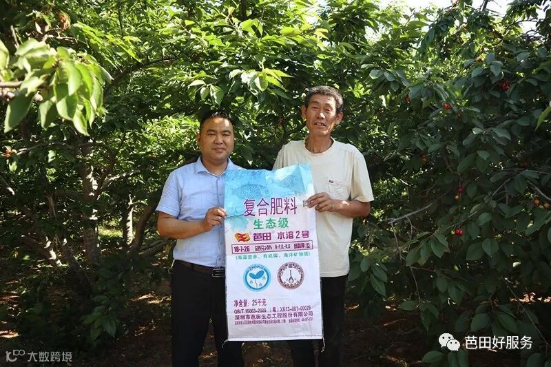 “芭田水溶2号(18-7-26)复肥水溶性好,冲施起来非常方便。产品中富含生物低温酶解深海海藻精华,樱桃用了之后,树的长势好,坐果率高;而且水溶2号复肥中还含有海洋矿物质可以给樱桃提供大量、优质、可吸收利用的海洋矿物质养分使得樱桃的含糖量高、果实硬度好、裂果少。”李佩胜表示。