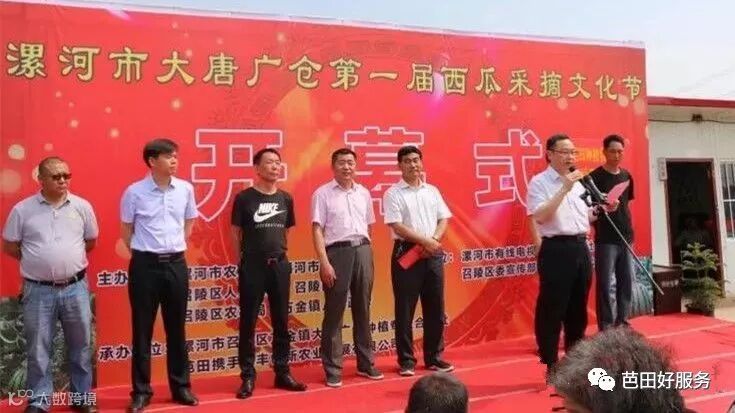 近日,由漯河市召陵区万金镇大唐广仓合作社、芭田惠丰创新发展农资公司精心策划的漯河市大唐广仓第一届西瓜采摘文化节在万金镇唐桥村隆重举行,150余名种植户踊跃前来比拼交流,活动现场热闹非凡。召陵区区委副书记赵广成、区政府副区长王仕梁,芭田股份中原营销公司河南大区总监马洛生、漯河惠丰创新发展农资公司总经理杨喜凤及相关领导参加了活动。