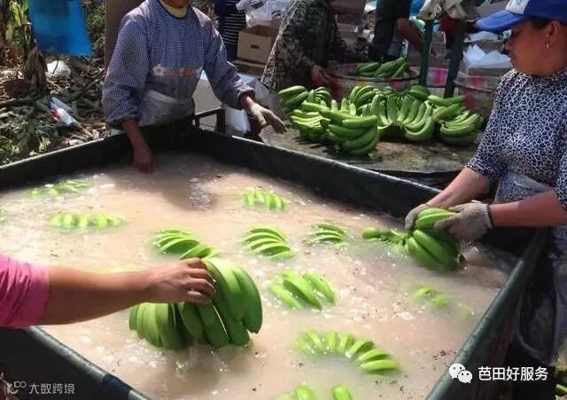 真相:香蕉采摘后呼吸旺盛,易腐烂。割蕉后,产地周边鲜销的就直接入库贮存了,需要长距离运输的则马上就要做保鲜处理。视频中的乳白色液体是保鲜剂,消费者不用担心。香蕉要在七八成熟的时候进行采摘。一般都会将香蕉置于冰水或凉水中降温并洗去蕉油,然后置于含有保鲜剂的水池中浸泡数分钟进行杀菌保鲜处理,晾干后用塑料袋包装、抽真空、装箱,然后马上装车运输至冷库贮存。