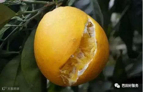 膨果期缺硼,果实上会产生黑点,并易在果皮处产生横裂或斜裂。