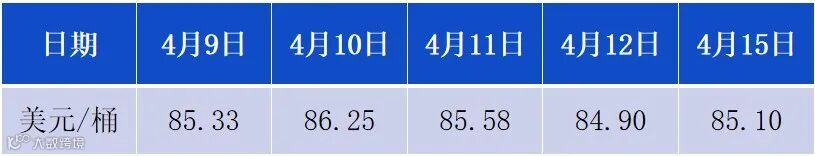 4月9日-4月15日WTI原油价格走势