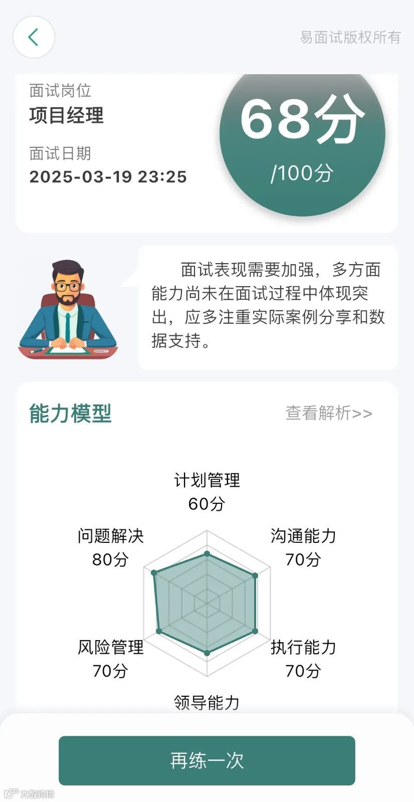 不仅有整体能力评估还有详细的回答解析,手把手教你提升!