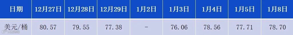 12月27日-1月8日WTI原油价格走势