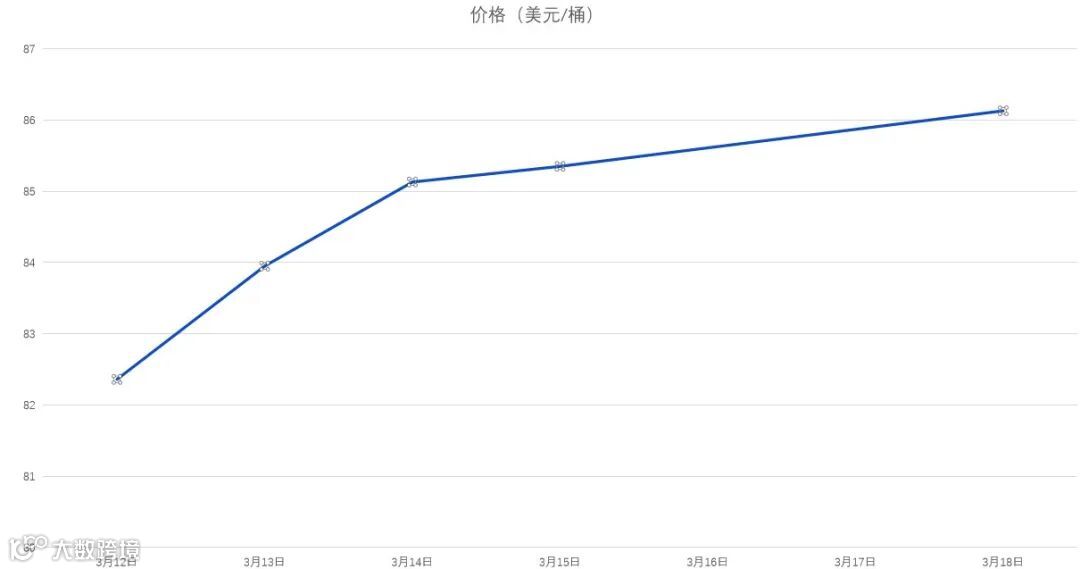 3月12日-3月18日WTI原油价格走势