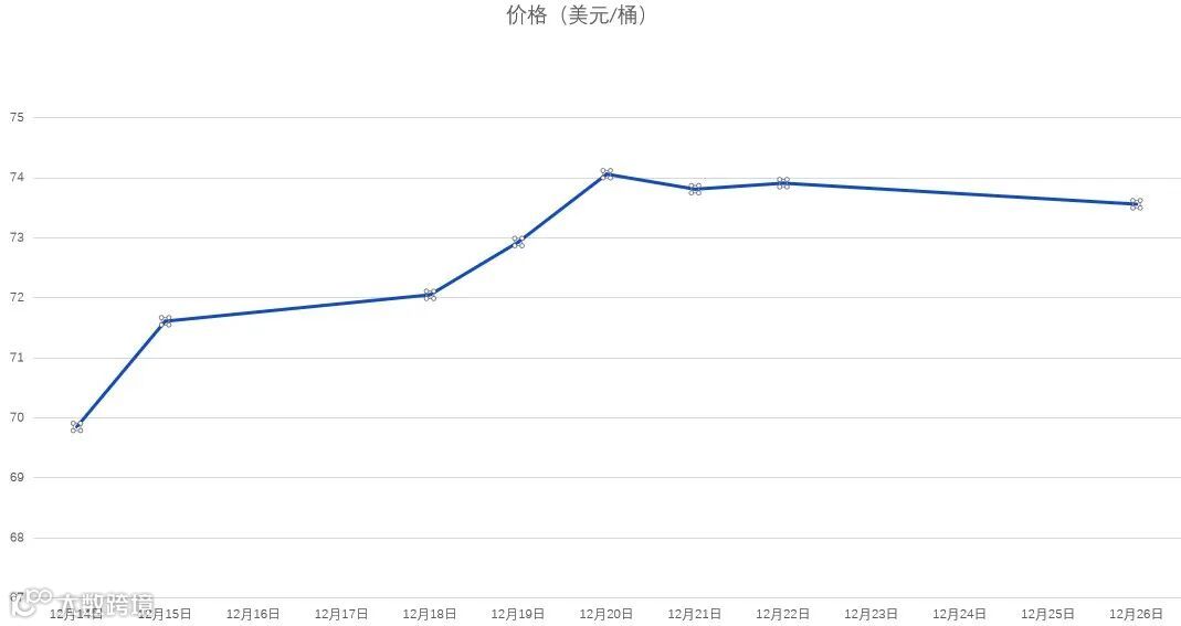 12月14日-12月26日WTI原油价格走势