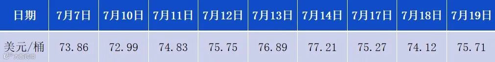 7月7日-7月19日布伦特原油价格