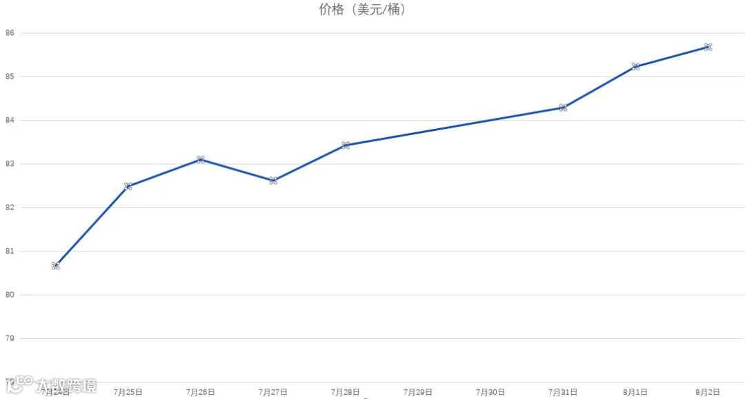 7月24日-8月2日WTI原油价格走势
