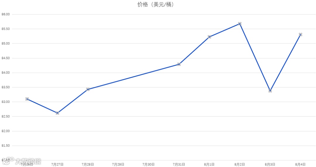 7月26日-8月4日WTI原油价格走势