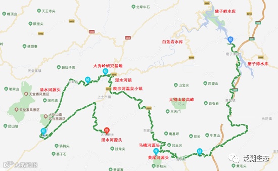 次日,车队顺东源黄尾河逆流而上,沿磨子潭水库,岳西黄尾镇(彩虹瀑布),清云峡,青山乡,到达多枝尖的金刚岭北侧黄尾河源头。紧接着,科考队从西淠河西源漫水河的主要支流马槽河源头出发,沿包家河十里画廊,太阳乡,抵达霍山的陡沙河温泉小镇。