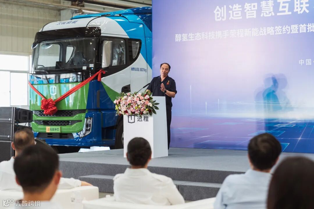 8月6日,醇氢生态科技-荣程新能集团首批100台氢燃料重卡交付仪式在远程新能源商用车天津生产基地隆重举行。交付的远程星瀚G氢燃料重卡将陆续投入到京津冀环渤海区域省际干线物流、钢铁、港口等大宗物资运输场景,助力京津冀绿色运力升级。