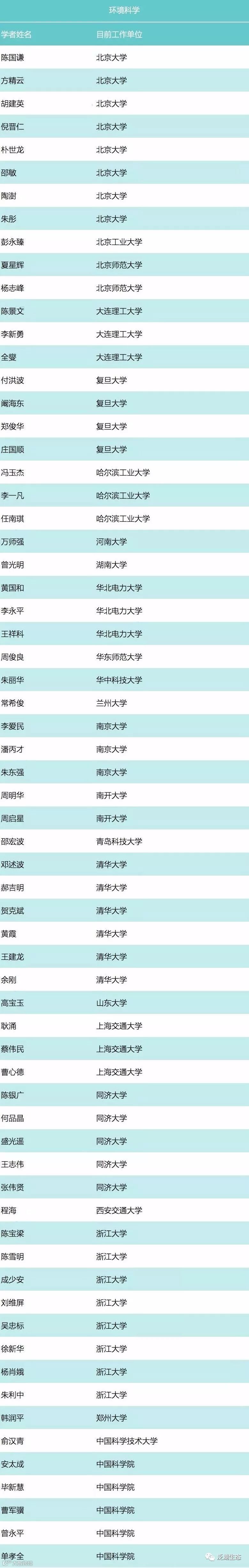 2017年中国高被引学者分别来自227个高校或科研机构,其中共有200所高校拥有高被引学者。2017年中国高被引环境科学领域学者名单如下: