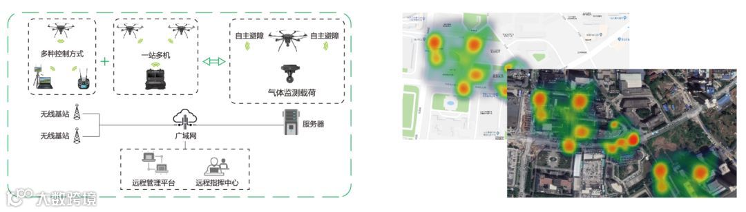 2.大气环境监测中,气体监测载荷可支持20余种专用气体传感模组(NO2、O2、O3、CO、CO2、C2H5OH、SO2、CH3SH、Cl2、ClO2、NH3、SiH4、H2S、HCN、HF、F2、HCHO、VOC、PM2.5、PM10等),支持现场热插拔、应用中切换;所有传感均经过统一封装、计量检定,并由专用智能传感箱装载,对传感器模组进行保养维护,同时支持可见光1080P和红外640P的实时高清拍摄;最终通过云端软件在线实时反馈气体污染信息。