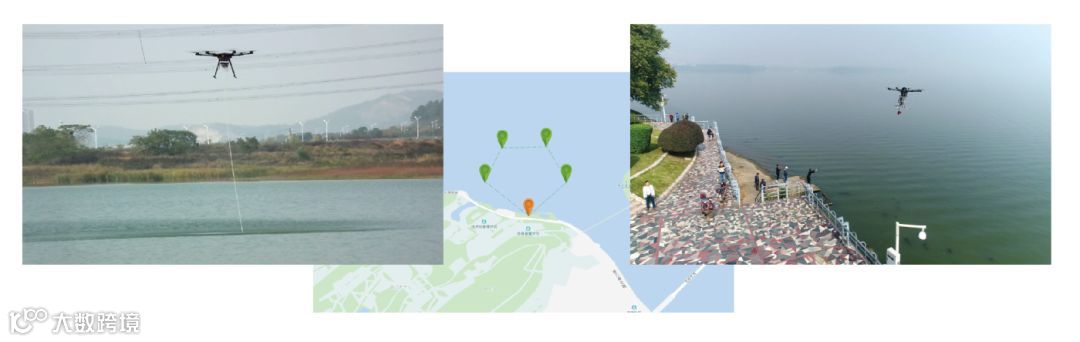 水环境监测,通过无人机飞行平台携带水样取测载荷完成对目标水域环境定点监测,可实现对目标水域进行多点采样,取测一体,实时反馈水质数据信息;面对突发应急事件,可快速响应,实时跟踪反馈污染状况;结合飞流智能模组化自适应工业监测AI平台,自动生成网格化水环境数据分析结果。