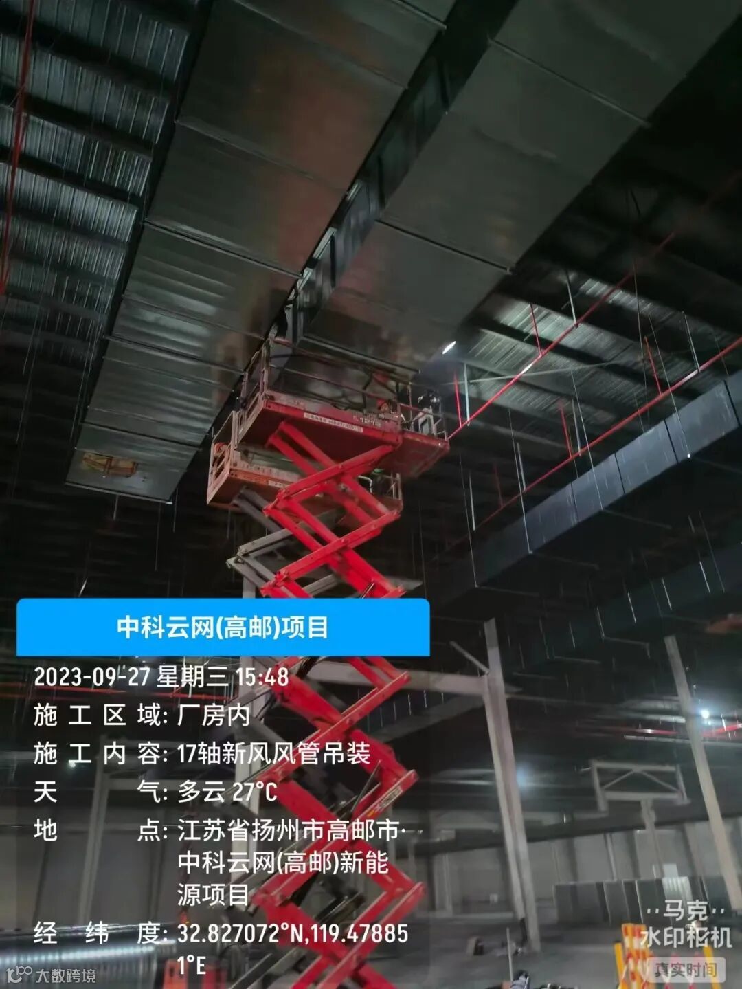 施工内容:17轴新风风管吊装