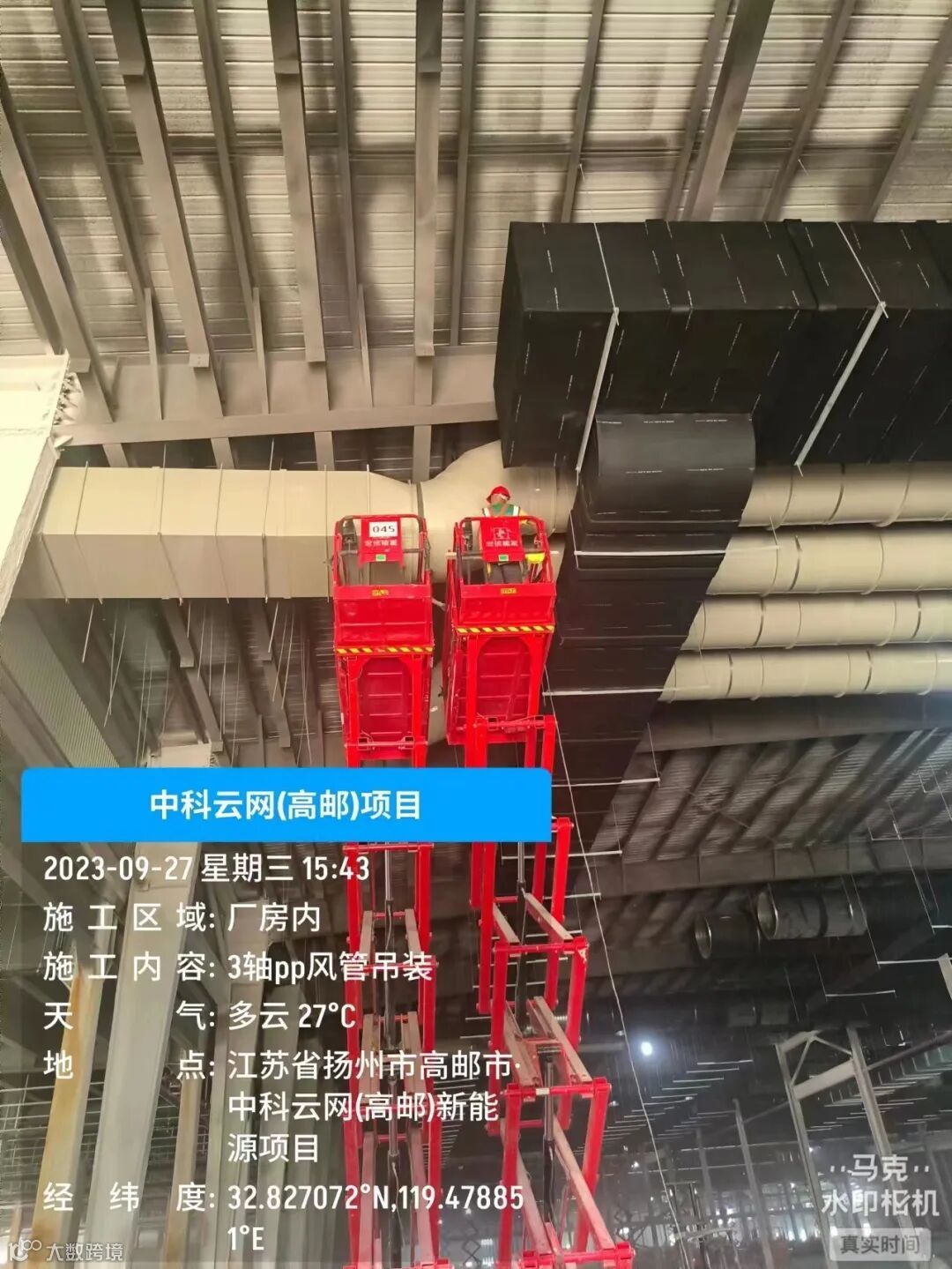 施工内容:3轴pp风管吊装