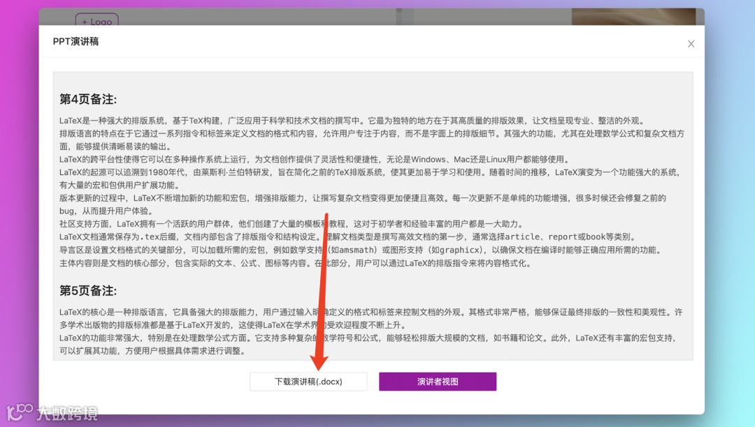 我们除了提供带备注的pptx,还可以直接单独下载word版本的演讲稿哦,快来看看怎么操作。