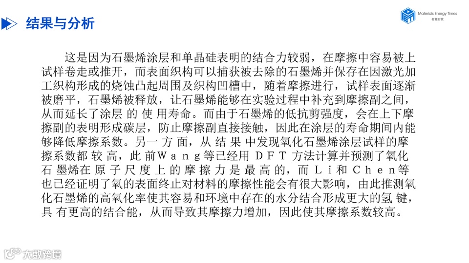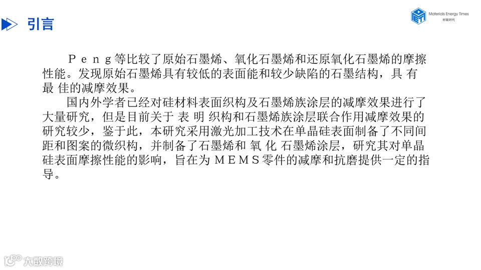PPT|石墨烯类涂层和表面织构对单晶硅摩擦性能的影响