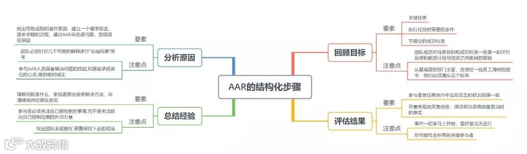 而在不断精进的过程中,反思与总结也很重要。这里推荐一个即时、易操作的学习方法给大家——AAR(After Action Review)。微软公司在每个新版本软件发布后,都要进行详细的“事后检查”,大家一起回顾整个过程,就是AAR,瞄准问题,区分出有效率的过程和无效率的过程,并为将来提出一些建议。无独有偶,施乐公司1992年实施了大规模的组织变革,一年后,公司对这个变革项目进行了重新的审视,被称为“总裁回顾”。这是一个考虑周到,精心设计的过程,以来分析施乐的“设计意图”(既定的再造目标)与实际效果之间的差异,所有的这些回顾活动,目的都是为了让成功复现或防止错误再度发生。