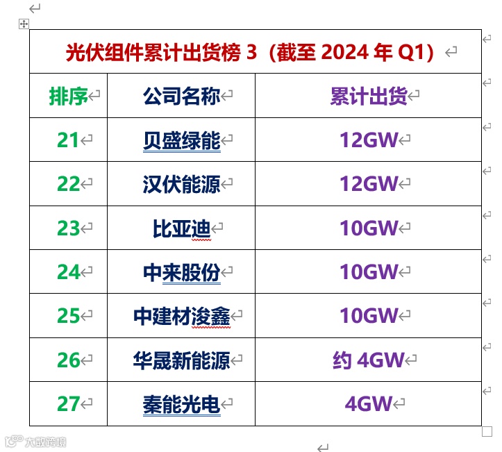 晶科能源、晶澳科技、天合光能、隆基绿能锁定2024上半年全球光伏组件出货Top4后,继续巩固全球光伏组件累计出货保持领先的市场地位。