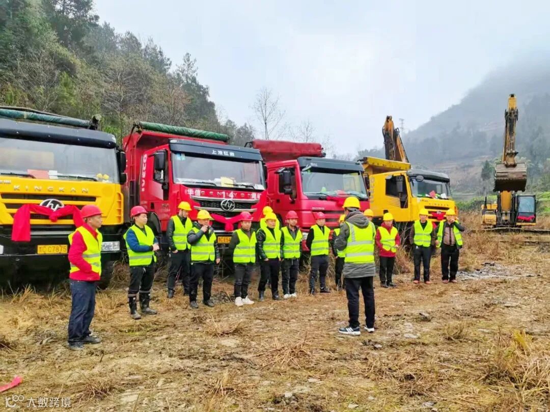 一排排披挂红绸的工程车整装待发,一时间万炮齐鸣,响声震天,鞭炮声、机器轰鸣声、欢笑声久久回荡在山谷间,喜庆而振奋人心。