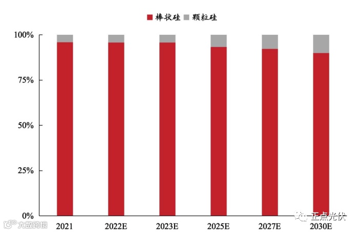 2021-2030E棒状硅/颗粒硅市场份额发展趋势