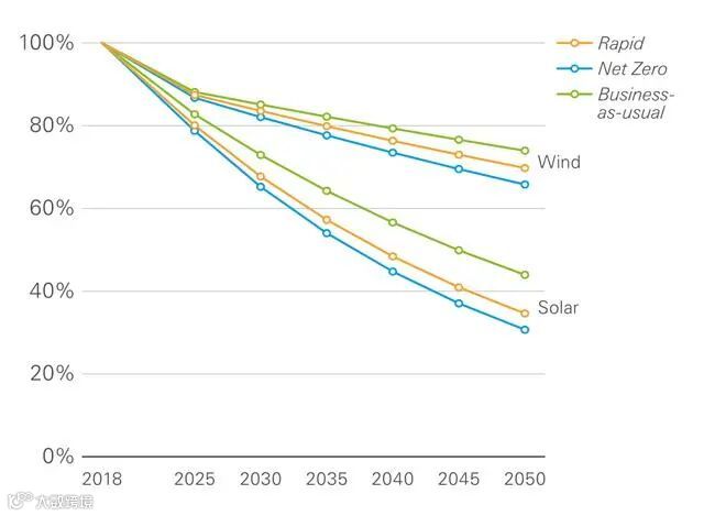 图3:未来30年光伏成本下降曲线,资料来源:BP Energy