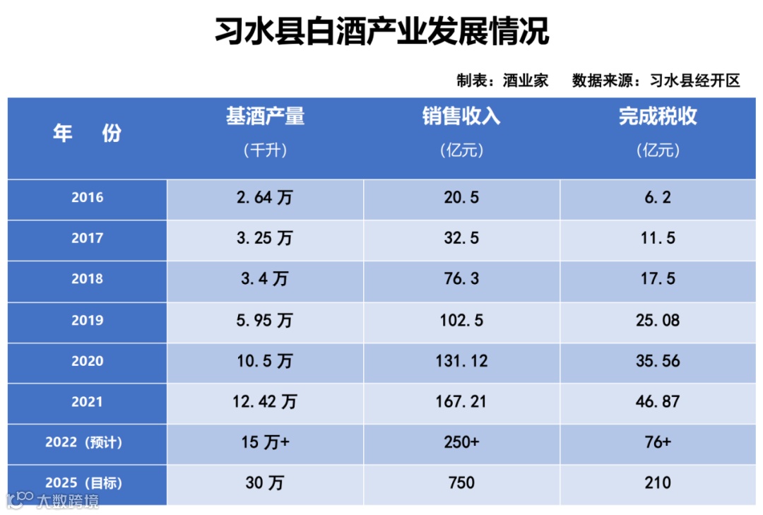 据媒体报道数据显示:“十四五”期间,古蔺县力争到2025年实现白酒产能达到17万吨,产值700亿元,主营业务收入500亿元,税收150亿元。2035年白酒产业将建成产能23万吨,实现产值1000亿元,主营业务收入700亿元,入库税收200亿元。