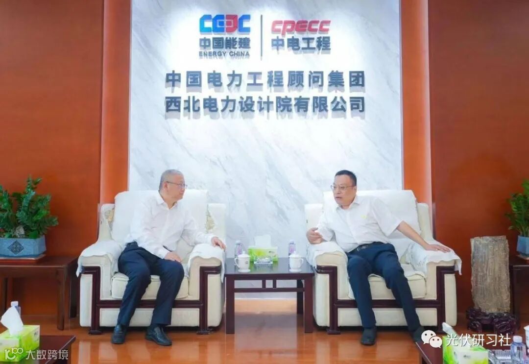 隆基绿能创始人、总裁李振国与西北电力设计院党委副书记、总经理、董事史东洽谈交流
