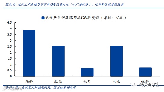 ➢ 资金投入大:虽然多晶硅工艺和装备已经实现国产化,其单位投资成本已由此前万吨 100 亿元降低至万吨 10 亿元以下,但是从整个产业链来看,硅料环节仍是光伏制造端资金投入最大的环节。