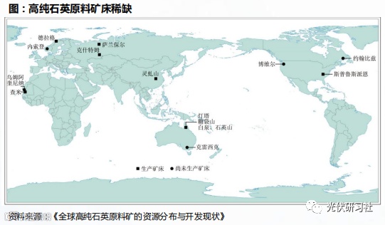 稀缺的优质原矿资源是根本。高纯石英技术包括原料选择、提纯工艺、加工装备和质量检测等四个方面,是既相互独立又相互联系和制约的技术整体,其中以高纯石英原料的识别、评价与选择最为关键。全球优质矿源稀缺,海外厂商尤尼明、TQC的矿源均主要来自美国斯普鲁斯派恩矿,该矿床规模最大且品级最为优质。而我国 4N8 高纯石英高端产品未能国产化的根本原因,即迄今还没有找到能够稳定满足工业生产需要的优质原矿。