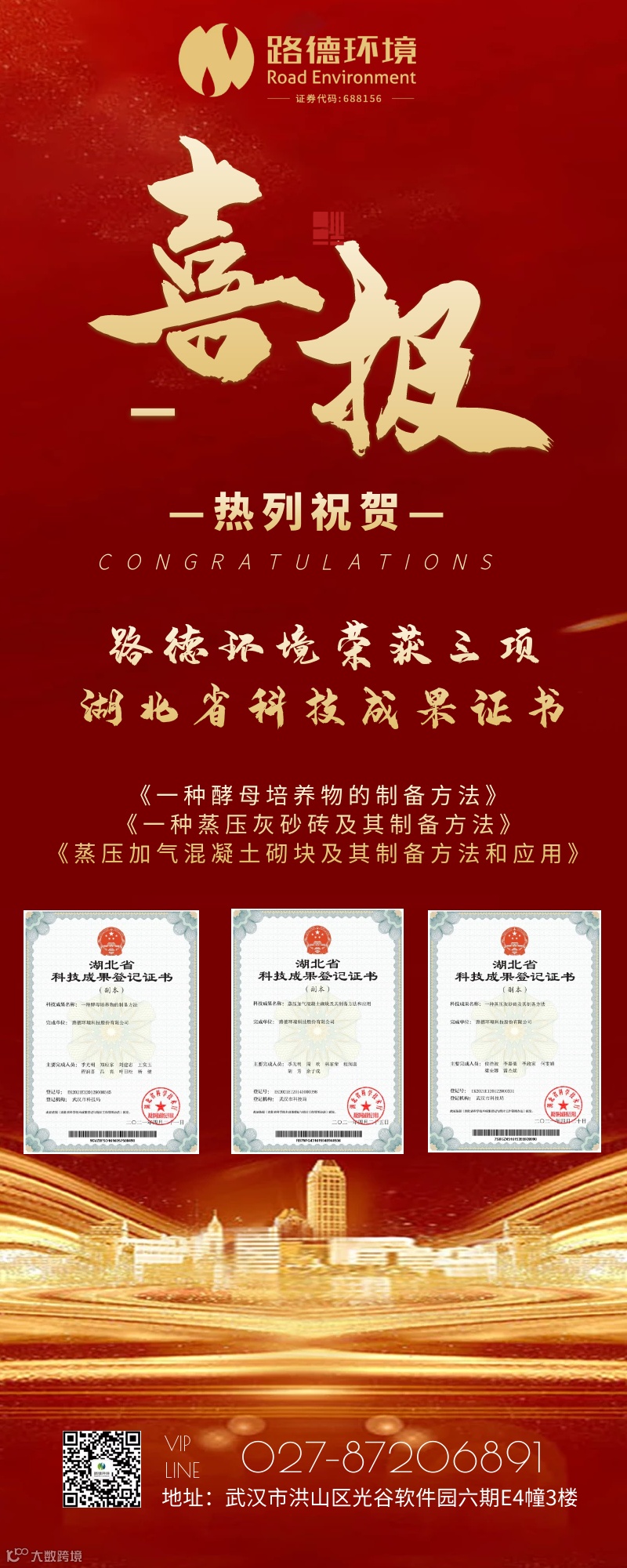 热烈祝贺路德环境荣获三项湖北省科技成果证书