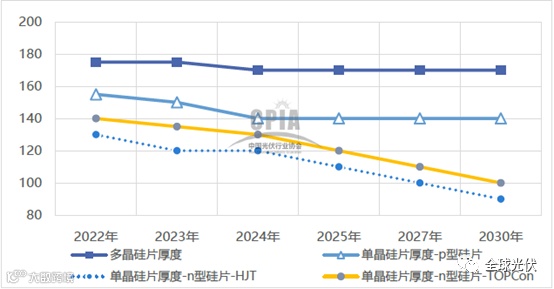 图26 2022-2030 年硅片厚度变化趋势(单位:μm)