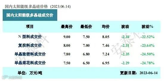由于硅片价格持续下跌,导致硅片企业采购硅料积极性不高,