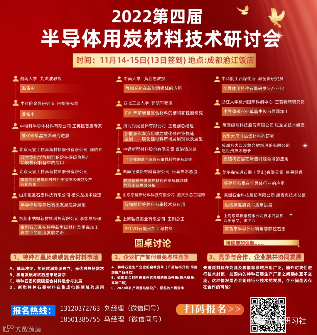 亲,点击下方的“阅读原文”,立即报名参加第四届半导体炭材料研讨会!