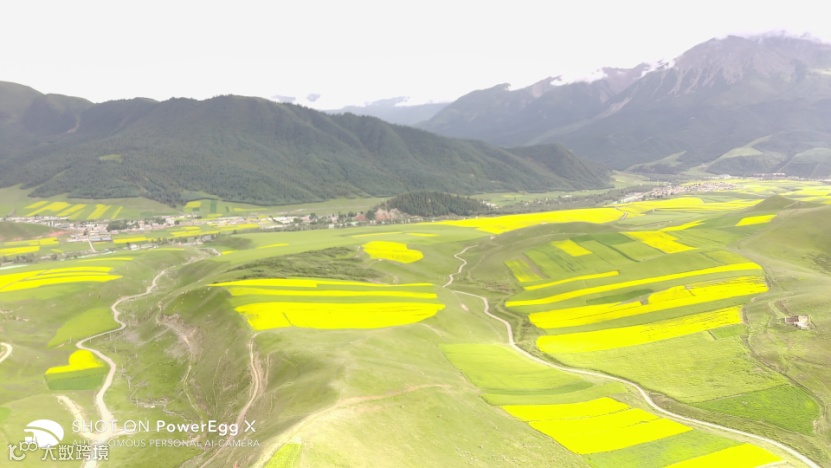 青海,因其高海拔、纯净、自然所著称。在PowerEgg X随拍蛋的镜头下,这里的草海宛如一幅幅画卷,铺展在山间。