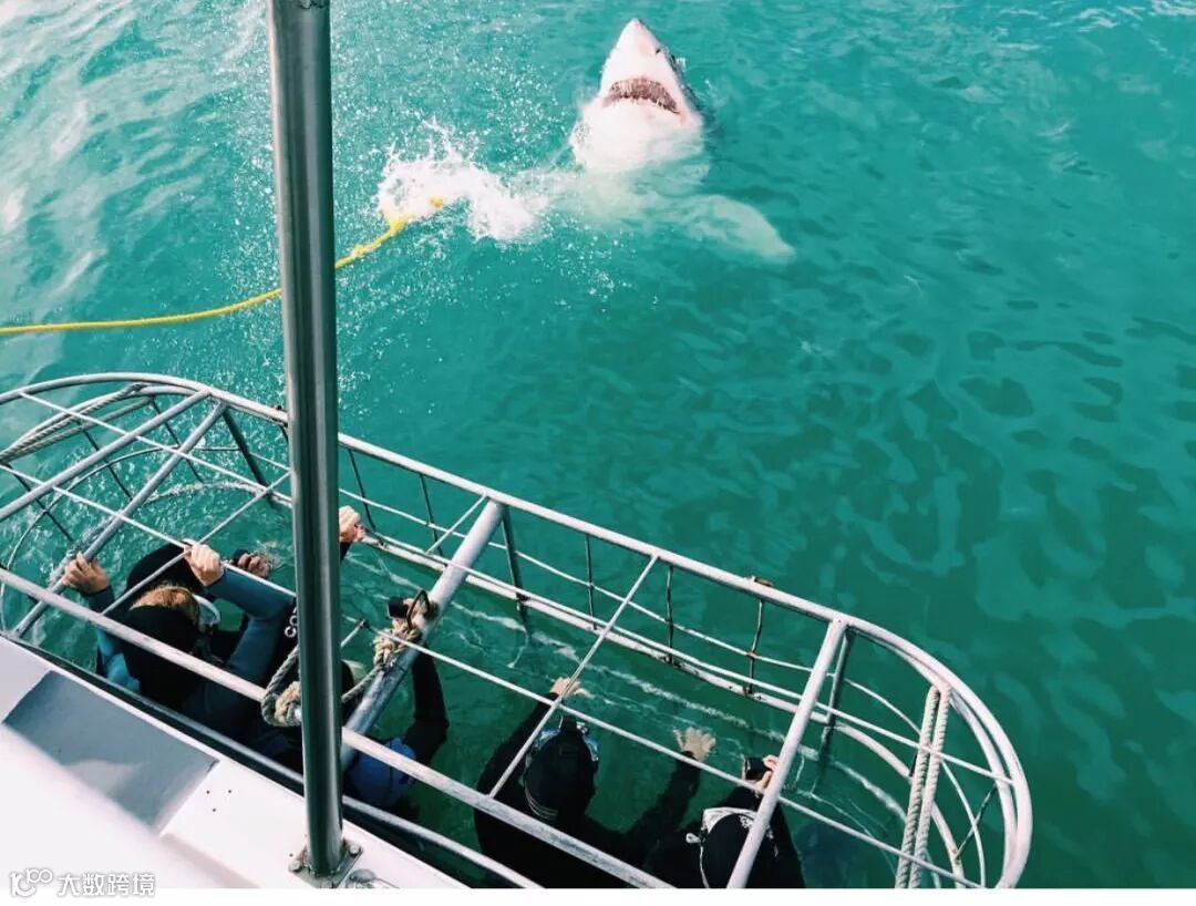 西开普敦的潜水运营商用诱饵吸引鲨鱼靠近笼子,保证游客可以看到真实的大白鲨。铁笼潜泳的费用是每人1100兰特。或者你也可以让PowerRay小海鳐替你下水,自己坐在岸上通过VR眼镜观看,同样能够获得身临其境的真实感受,又可以避免危险。