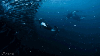例如在冰岛海域附近的虎鲸,喜欢吃鲱鱼。当它们找到成群的鲱鱼群时,会派出一两只虎鲸分割成方便把控的数量,接下来七八只虎鲸会将这鲱鱼逐渐逼上水面,随后待命的虎鲸将找准时机,把这些不断越出水面的鲱鱼拍晕。为什么不像蓝鲸一样张卡大嘴冲进鱼群吃个爽呢?因为虎鲸不仅是要果腹,还要把食物分给同伴或是藏在洞中做存粮,甚至在南极有的虎鲸就学会了使用冰箱,将捕食到的猎物藏在海底冰封中保鲜。