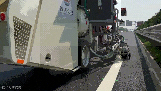 兵马俑专用线公路改扩建项目标线施划工作由陕西交控交通工程有限公司负责,引进德国霍夫曼标线施划设备,提高了标线施划的精准度,提升了项目的工程质量和专用线夜间出行的安全性,为项目高质量完成通车目标奠定了坚实基础。