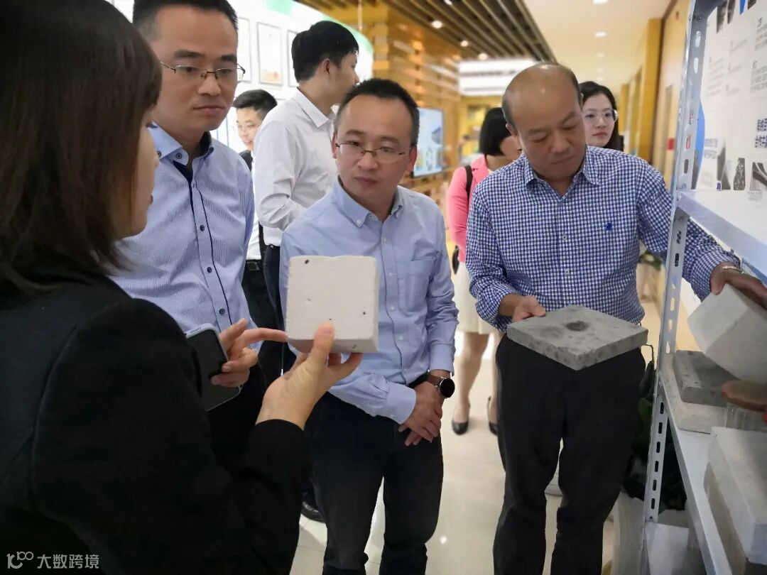 在脱水泥饼资源化利用展台前,陈新华一行对公司研发的新型墙材砖很感兴趣。刘菁女士介绍道,这是公司通过自主研发的淤泥脱水固结一体化技术制作的蒸压加气混凝土砌块,这种新型墙材砖很轻,加气块的泥饼掺量达到30%以上,替代了传统材料中粉煤灰、沙石中的有效成分,该项技术属国内首创。