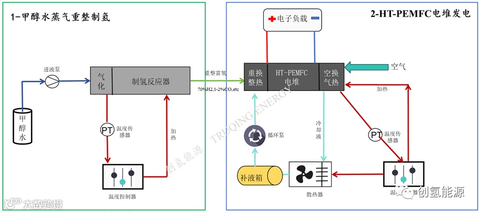 甲醇制氢与HT-PEMFC电堆技术耦合流程图