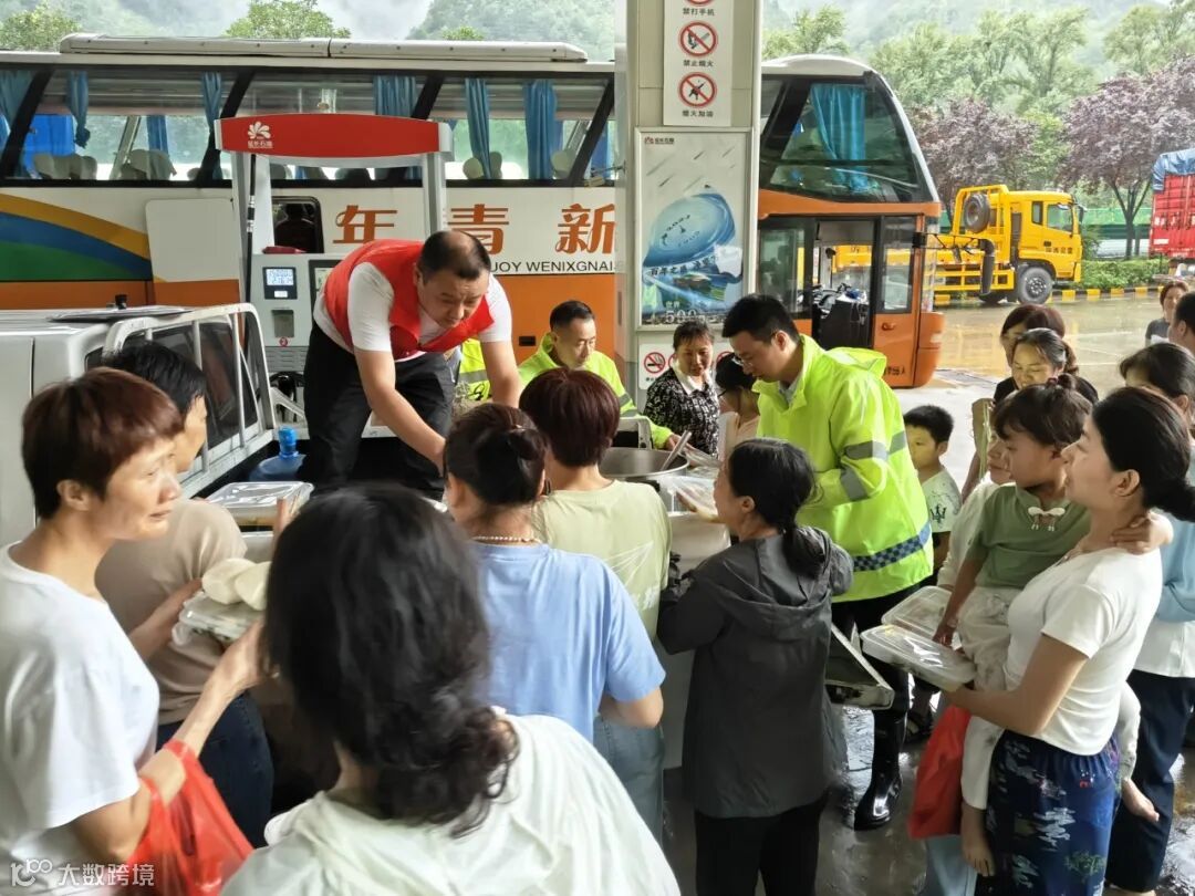 7月17日,受连续两天的强降雨影响,G85银昆高速宝鸡段交通管制,部分司机滞留在宝鸡南服务区,服务区第一时间启动应急预案,做好区内各项服务保畅工作。同时服务区得知附近的清水河大桥有滞留司乘人员,经理王娟娟立即带领员工为等候车队,送去免费的泡面、鸡蛋、菜夹馍、稀饭等食品。王娟娟表示:“看到大家能够在困难的情况下吃上一口热饭,我们心里也踏实了许多。”