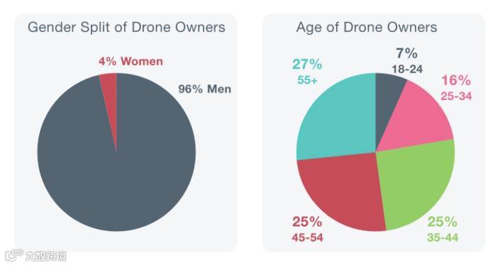 报告显示,在英国拥有无人机的用户中,男性占96%,45岁以上的占52%,综合年龄和用户比重,感觉还是国内比较容易撩到女飞手。