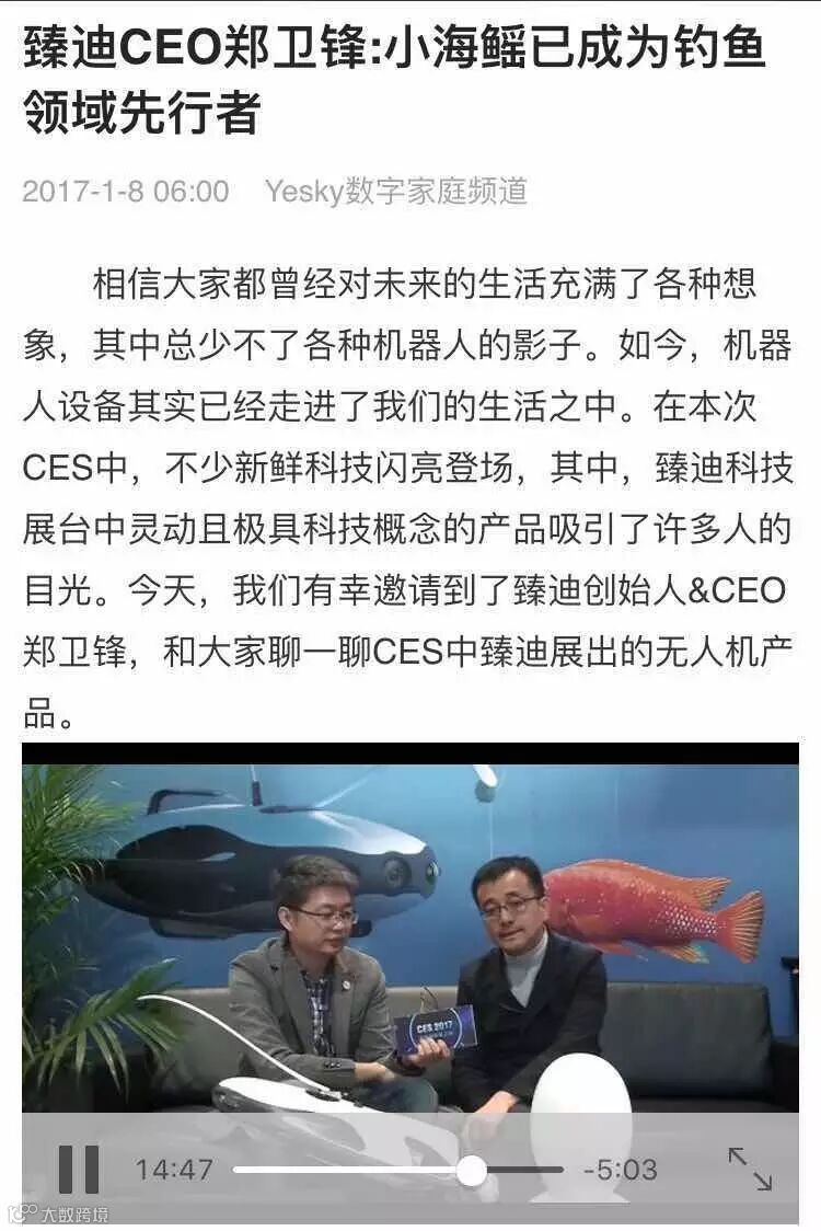天极网也于昨日发布了CES现场专访视频,臻迪创始人&CEO郑卫锋先生接受采访并现场介绍了产品和公司状况,戳阅读原文看视频哦~