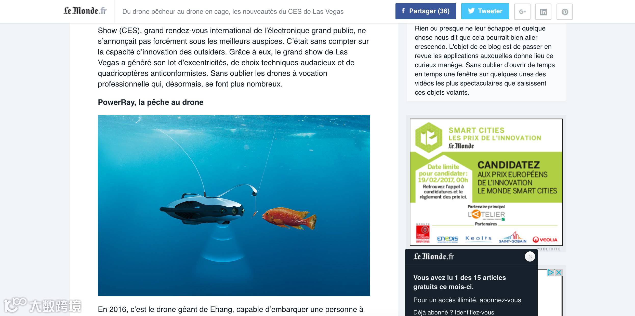 雅虎全球站把PowerRay 置顶在首页位置; CES官方合作媒体Engadget提名PowerRay为CES官方最佳产品,在众多无人机和智能机器人的品类中,只有五个产品脱颖而出,PowerRay 凭借其创新设计及多元化的功能荣登其一;英国路透社将小海鳐评选为全场最佳科技产品之一。