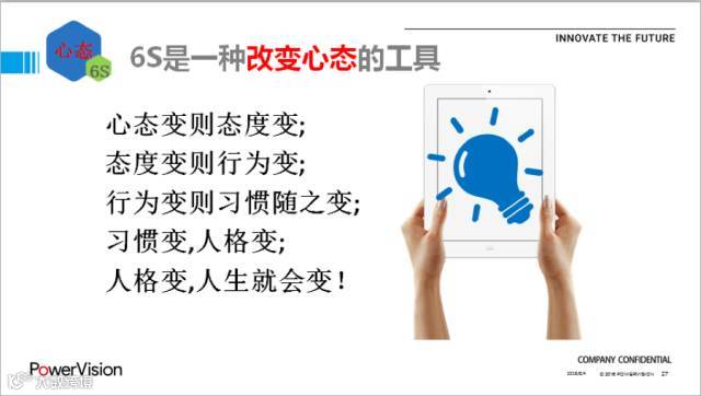 6S管理是工作顺利开展的前提和基础,它的目的不仅仅是卫生清理、文件整理等表面工作,更重要的是6S的推行能保证后续工作的顺利高效运作,这对于一个企业来说,至关重要,尤其是对于PowerVision这样一家技术创新型企业。在竟争激烈多变的现代市场经济环境下,企业必须夯实基础,充实自己、强化自己,才能成为竟争中的强者!