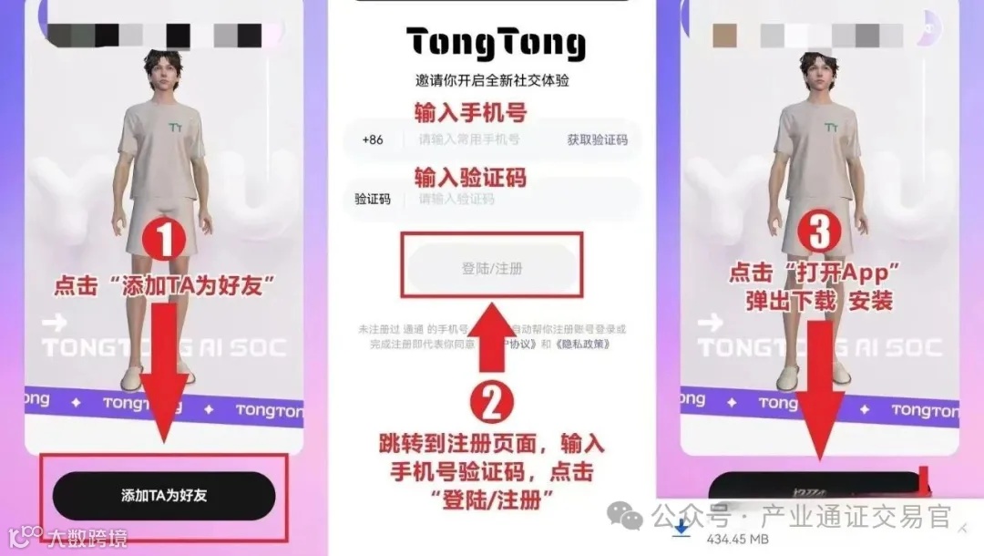 👇点击“添加TA为好友”,输入手机号验证码后,点击“登录/注册”,最后点击“打开App”弹出下载安装。