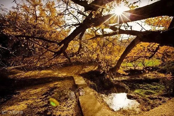 一阵风吹来,沙沙落下一片片扇形的金叶,散落在房顶、院落、柴草堆、山坡、田野……你可以想想一下那样的画面,是不是有种田园家居的悠闲感?